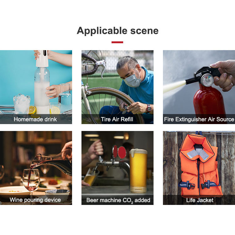 - Cartuș/cilindru/canistră/rezervor de CO2 de înaltă calitate, rezistent, ușor de instalat și îndepărtat.